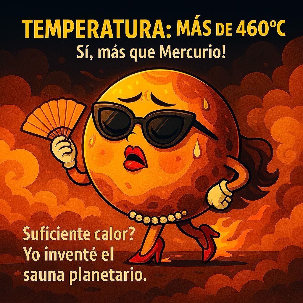Brilla como estrella, pero es un infierno. Su atmósfera espesa atrapa el calor y su superficie es un horno de presión y lava.